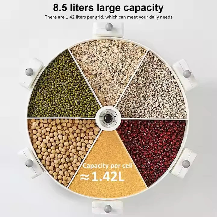 Rotate to access your desired grain—no more messy pouring or scooping.
