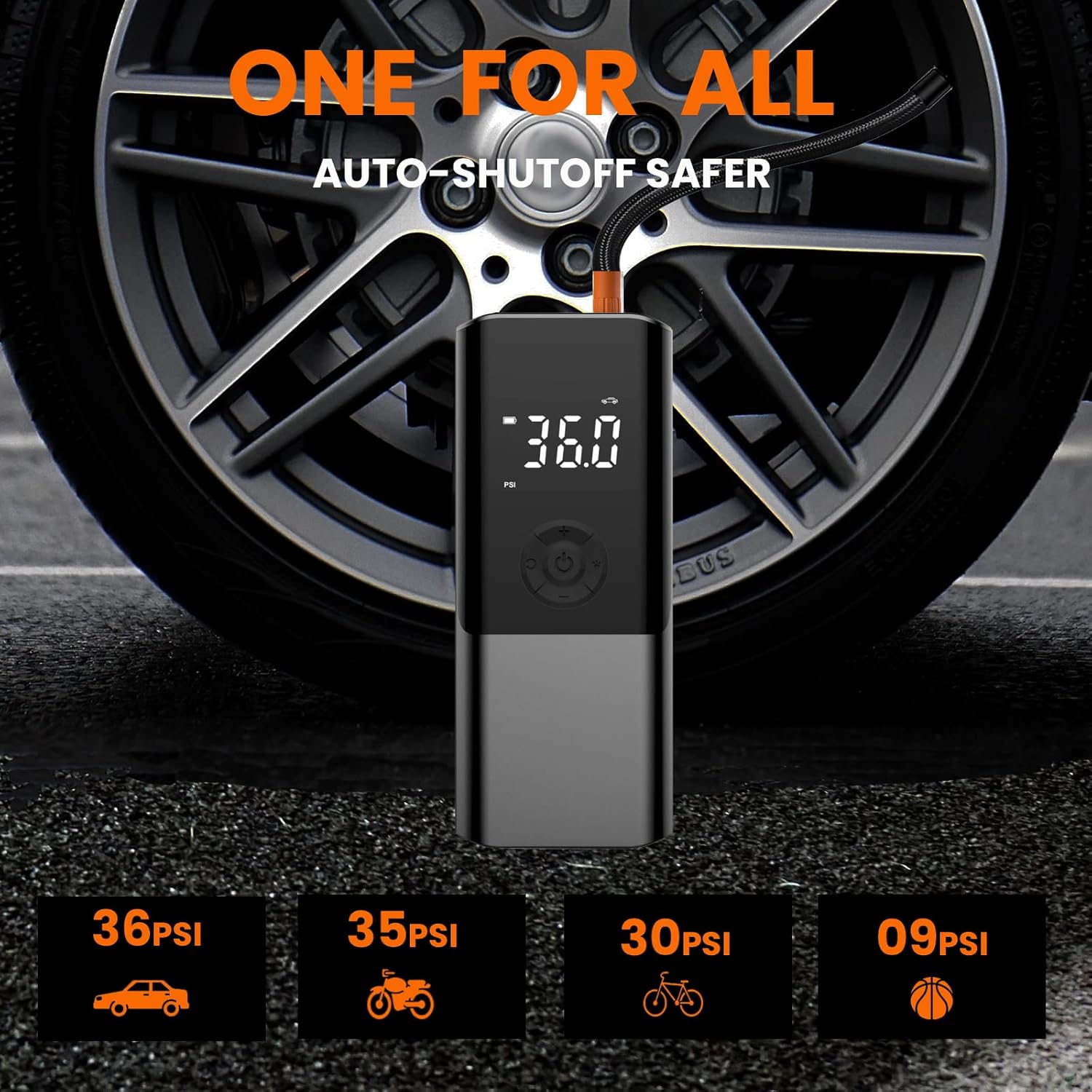 Cordless Freedom: A built-in 4500mAh lithium-ion battery delivers powerful performance, capable of inflating up to 4 car tires on a single charge.