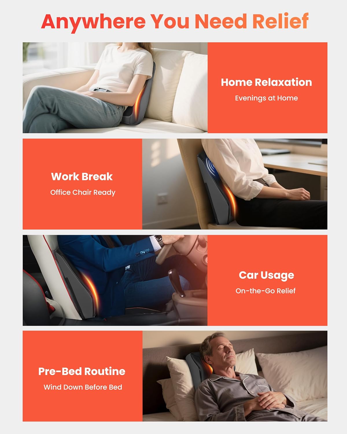 Deep tissue relaxation with adjustable intensity, soothing heat, and multipurpose use — the perfect massager for home or office.