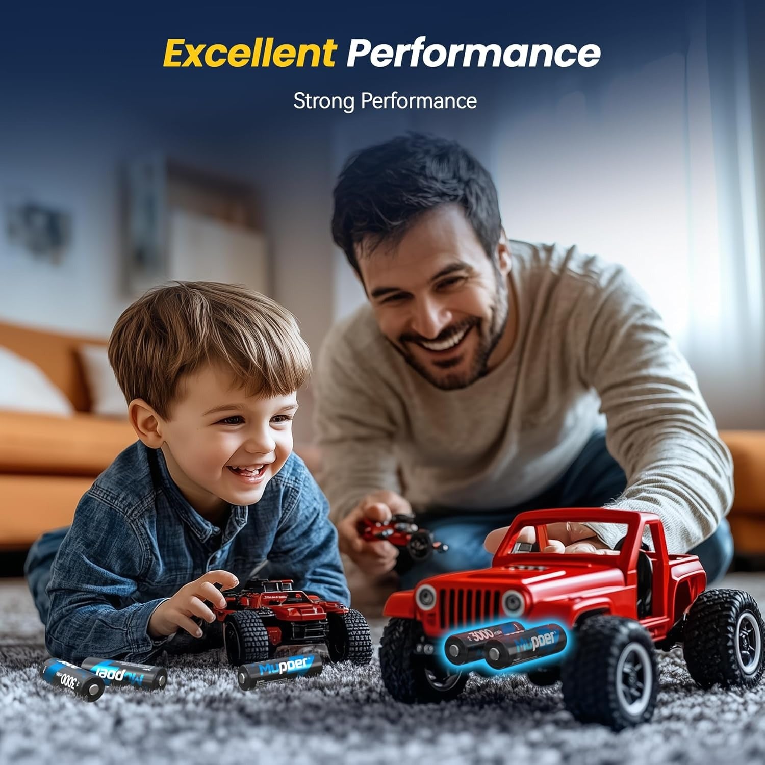 Rechargeable Up to 2500 Times: Exceptional 2500-cycle lifespan with 0V activation capability. Even fully drained batteries can be refreshed and charged again.